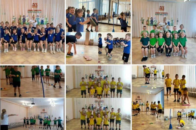 Маленьким спортсменам предстояло не только пройти эстафеты и соревноваться в ловкости, силе, смелости и находчивости, но и выполнить сложное построение, исполнить песни и стихи, посвящённые этой важной дате.