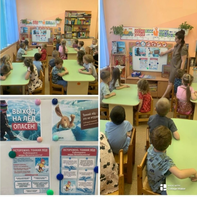 В нашем детском саду прошли профилактические беседы «Осторожно! Тонкий лёд!».С наступлением морозной погоды не стоит рассчитывать на мгновенное покрытие водоемов льдом. Это процесс длительный и зависит от многих факторов. Практически каждый год случаются ситуации, когда дети и взрослые попадают в опасное положение, оказываясь в ледяной воде.В целях предупреждения травматизма детей на водных объектах педагогами была проведена профилактическая работа с детьми: беседа «Правила безопасного поведения на льду»; рассматривание тематических картин «Будь осторожен»; сюжетно-ролевая игра «Спасатель», разбор проблемной ситуации; дидактическая игра «Как избежать неприятностей»; рассматривание плакатов «Осторожно тонкий лед!»Подобные беседы формируют у детей чувство осторожности, ответственного поведения за свою жизнь и жизнь окружающих.